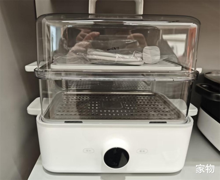 它有一个双层蒸格,蒸馒头、花卷、红薯或者是蒸鱼蒸螃蟹都没问题,功率足够,有1500W,不输明火灶台。